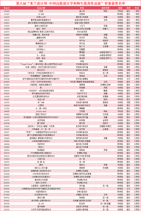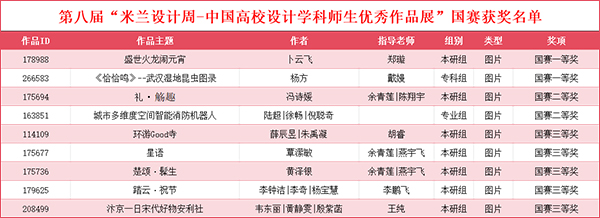 第八届“米兰设计周——中国高校设计学科师生优秀作品展”获奖师生作品名单。