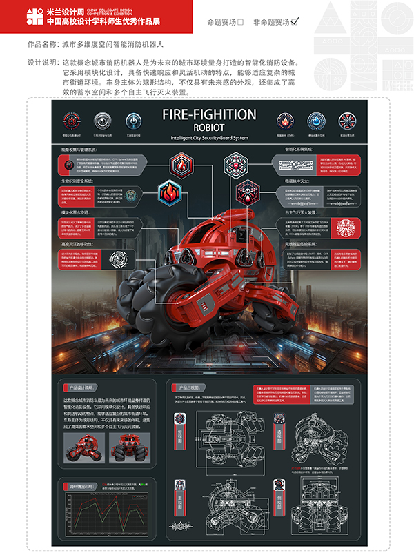 国赛二等奖作品《城市多维度空间智能消防机器人》,作者(教师):陆超 徐畅 倪聪奇