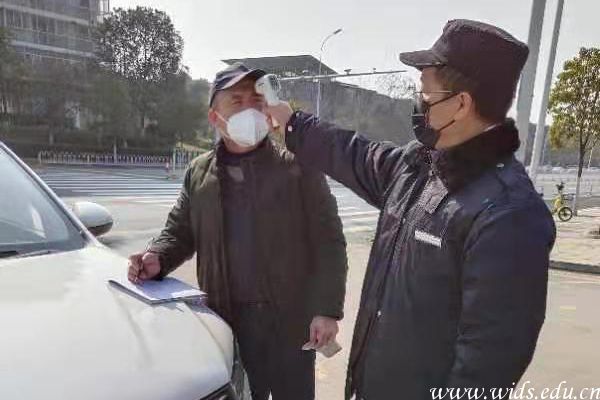 “武汉封城后,学校就开始实行封闭管理,由学校后勤、保卫、物业等部门组成的十几位值班人员,每天做好留校人员的体温监测、校园重点区域的消毒、进出人员及车辆登记等相关工作,最大限度地减少人员流动、切断病毒传播途径。”