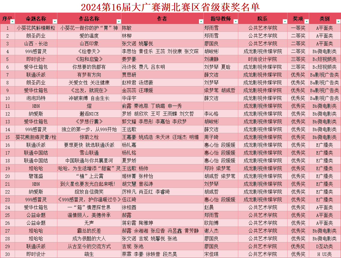 2024第16届大广赛湖北赛区升级获奖名单。