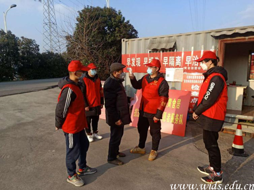 号召学院学生党员、鼓励团员青年向居住地社区(村)报到,积极支持和参与社区(村)疫情防控工作,为当地阻击疫情,贡献一丝力量。学院先后有多名学生党员和团员青年投身志愿服务活动,协助社区(村)完成防疫宣传、卡口管理、体温检测、小区街道巡逻和生活物资代购代送等,体现了新时代大学生的社会担当,展现了武设学子的良好精神风貌。