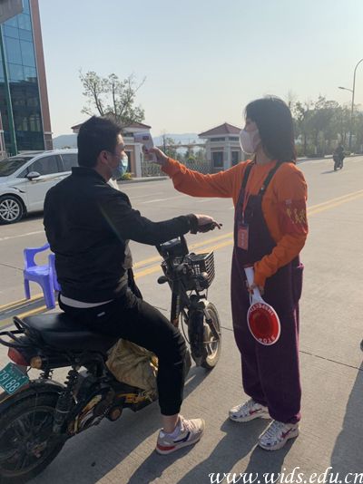 我是成龙影视传媒学院戏剧表演1701班杨旭哲,我在帛方社区负责检查来往车辆以及测量来往人员体温的工作。