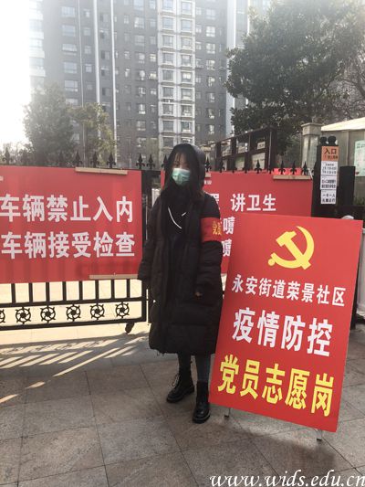 我是成龙影视传媒学院播音与主持艺术专业编创1701班李琬玥。我在永安街道荣景社区负责小区卡口执勤、管控人员流动、核实人员流动信息。