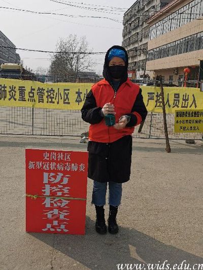 我是艺术设计学院产品1702班的曹馨月。我在小区疫情防控检查点值班。
