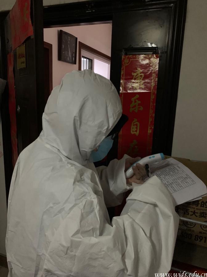 “社区是抗击疫情的第一道防线,在学校,我们是学生的引路人;在社区,我们是百姓的守护员”,我院党总支副书记王莹在防控初期就冲锋在前,积极参与社区疫情防控工作。据王莹介绍,她所在的小区是最早一批通报疫情的小区之一,同时物业管理工作人员中也发现了1位新冠确诊病例和多名疑似患者,小区情况实在不容乐观。“小区患病比例较高,居民都十分紧张、恐慌,大家都害怕下楼”,尽管疫情严峻,王莹深知,疫情面前没有“旁观者”,疫情防控更没有“局外人”,作为一名有15年党龄的老党员,王莹主动请缨,负责小区6个单元楼栋144户居民的健康信息采集和汇总上报任务,后来还承担起防疫宣传、楼栋清扫消毒以及帮助居民买菜、购买生活物资、送药上门等工作。她表示,“那么多医护人员奋战在一线,我作为党员,多尽自己的一份力,就能为医护人员和包括自己在内的普通市民多带来一份战胜疫情的机会和力量,这是一名党员的使命和责任。”