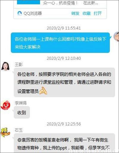 在工作群内,联络员们定期发布超星学习通、智慧树、中国大学生慕课翻转课堂系列在线培训,帮助教师在较短时间内掌握线上教学技能和授课方法。与此同时,当教师们反应教务系统无法导出学生名单的问题时,联络员们寻找相对简单的操作方法,制作了实操小视频,指导各学院(部)教学秘书尽可能高效地完成各项工作。