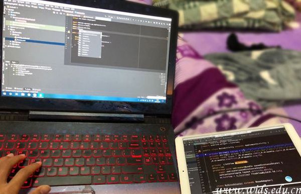 信息工程学院李鲁英老师负责的《移动互联网开发》课程是以代码教学为主,实践性强,线上教学难度大。为保证学生都能及时掌握老师所讲授内容,他在采用直播方式进行教学的同时,利用QQ群中的屏幕分享功能,让学生在手机端、电脑端都可以看到他的操作演示。在讲授代码实现功能时,他通过大大小小的案例来演示代码,每个知识点对应一个小案例,并展示实现后的功能效果,学生们也跟随他的步骤进行操作。在大家敲代码的间隙,他便在群里给学生答疑,增加课堂互动,如同大家都在实验室里上课,切实保证线上教学质量不下降。