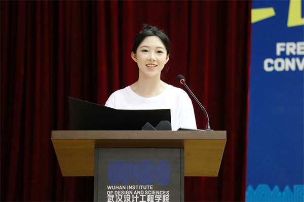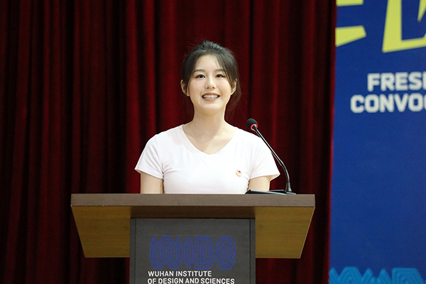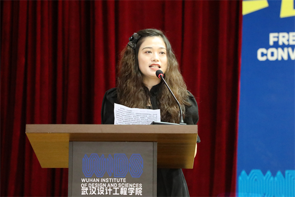 时尚设计学院表演(服饰表演与推广)专业陈煜蓉同学作为在校生代表,分享了自己的大学感悟。“以美育人、以文化人,武设有广阔的学习平台、丰富的学习资源和多彩的校园文化活动。”她希望学弟学妹们珍惜大学的宝贵时光和机会,积极实践、勇于创新,坚强面对困难和挑战,在自我反思和总结中汲取经验教训,收获成长。