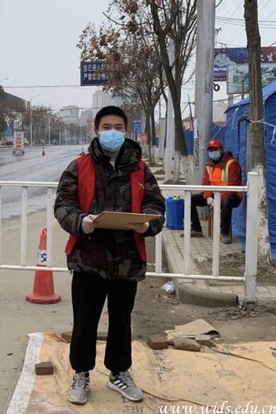 疫情虽然严峻,但丝毫没有阻碍护理学子们冲锋在前的脚步,与王柒星同班的张晋源,也主动加入到家乡的疫情防控工作,成为一名志愿者。从2月4日开始,张晋源便值守在钟祥九里乡的347国道卡口检测点,负责查验过往车辆及人员,量体温、消毒、信息登记等。工作中他始终坚守在一线、奋战在最前沿,严格把关,坚持做到“逢车必检、逢人必测,不留隐患”。他说,“我学习的是护理专业,具备一定的医学知识,既能做好个人防护,又能宣传防疫知识,更有责任、有义务参与到防疫工作中,与家乡父老一起为抗击疫情贡献自己的力量。”