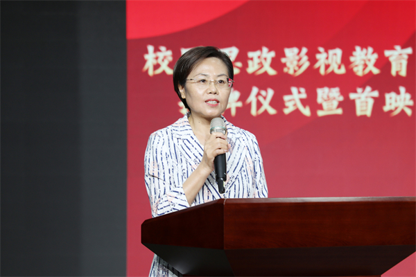 学校党委书记冉春桃在致辞中热烈祝贺校企共建思政影视教育基地顺利落成。刘恒 摄