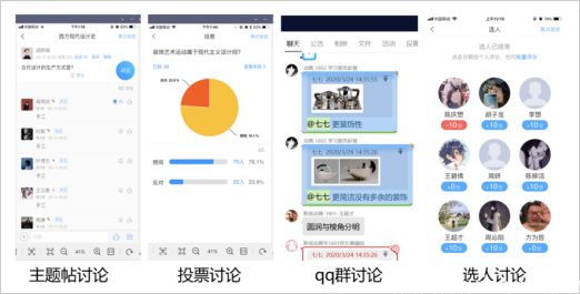 超星学习通的互动非常丰富,各有特色,可以根据不同的内容、不同的场合去设置互动。例如,在讲课的时候就语音要求学生在QQ群里发言、带动课堂气氛。容易混淆的主观问题就投票选立场,讲完后再投票一次,对比看看大家的反映。课中突袭式摇号选人,连麦问答,对的加分、错的扣分、顺便抓考勤,学生感觉紧张刺激。课后发布主题讨论贴,引导大家积极思考。