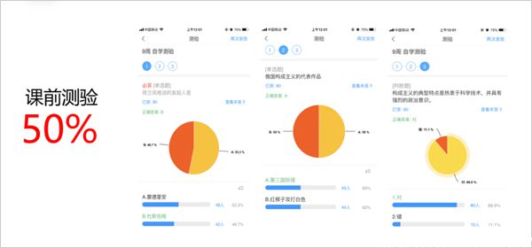 在学生进行完平台视频自学后就会发布一个小测验,限时5分钟,正确率在50%左右。