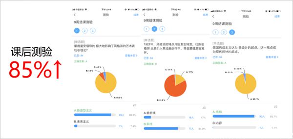 上完课后会再发布一个等量难度的课后测验,这个时候的正确率达到80%以上,好的班级90%以上。