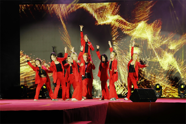 紧接着出场的是武汉校区的老牌社团SwagG舞团。聚光灯下,舞团以一支动感的街舞《Crush》征服现场观众。他们红色的舞衣,如同跳动的火焰,让每一次转身、跳跃都流露出青年应有的自信与激情。“当离别开出花,枝头绽出新芽,正如寒冬过后春风拂来,静候心中的冰雪慢慢消融。”藏龙之音校园歌手大赛十三强携手亮相,齐声演绎激励人心的歌曲——《离别开出花》。他们坚定而充满力量的唱腔,唱出了青年人的心声:面对离别和挑战,我们定要迈开大步,勇往直前,朝着梦想的方向不懈努力。紧接着,校舞蹈队献上《动感之舞》,自由松弛的啦啦操、活力四射的健美操、热情奔放的体育舞蹈……队员们凭借精湛的舞技和无限的活力,掀起了一股“舞蹈风暴”。