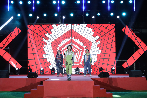 晚会最高潮,时尚设计学院走秀表演《校园时尚,运动风采》。