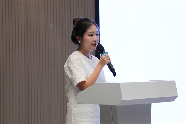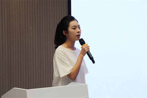 时尚设计学院马婷婷同学代表“尚美筑安”社会实践团队分享社会实践经验。刘恒 摄