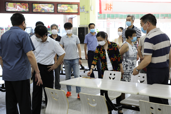 检查组到学校食堂、隔离室、物资储备室进行检查。
