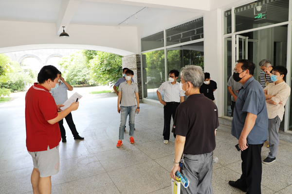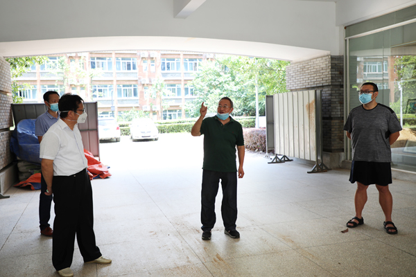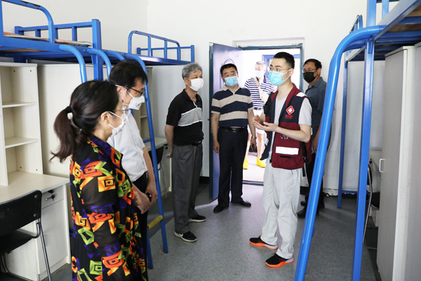 本网讯(记者 刘恒)6月8日上午,武汉市江夏区疾病预防控制中心卫生监测科副科长李超、消毒组技术专家刘杨来到学校,检查指导毕业生返校前疫情防控工作。学校党委书记冉春桃、常务副院长龚少平、副院长张丽娟、蔡光照等校领导和相关职能部门负责人陪同检查。