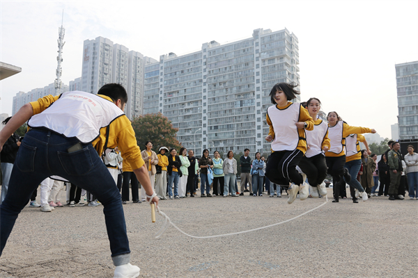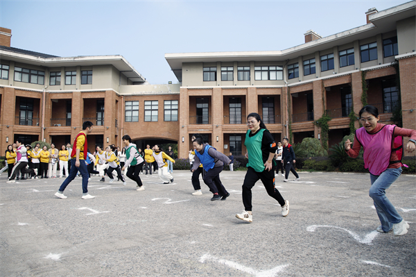 参加“集体跳大绳”项目的老师们轻盈如燕、配合默契。王诗佩 江匀函 摄