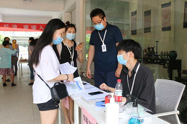 在现场工作人员的指引下,同学们踏着欢快的步伐走出通道,踏入阔别半年之久的武设校园。广播台熟悉的声音再次回荡在耳畔:“亲爱的2020届毕业生们:告别冬月,重逢夏阳,欢迎你们回家!”
