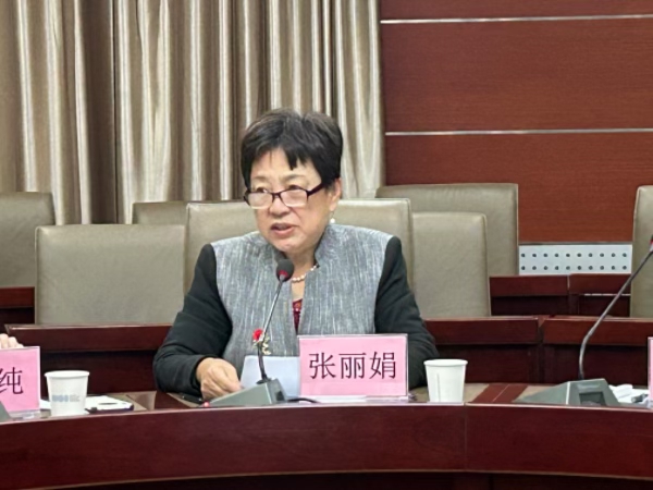学校党委副书记、副校长张丽娟介绍学校后勤服务保障工作基本情况。