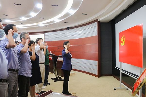 参会党员重温入党誓词。