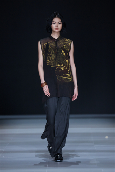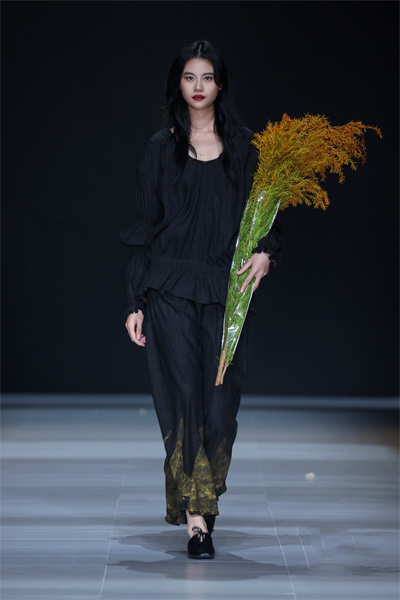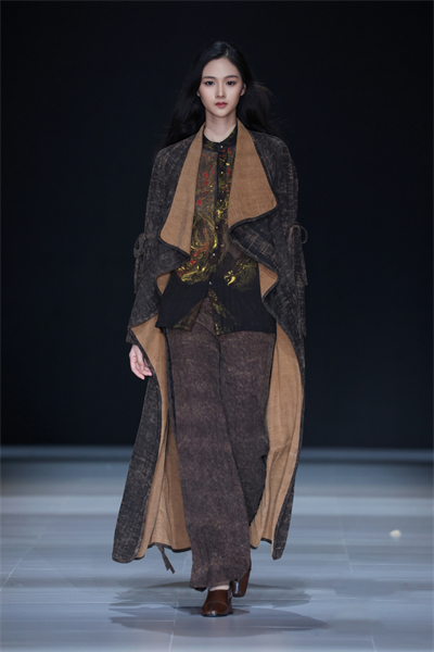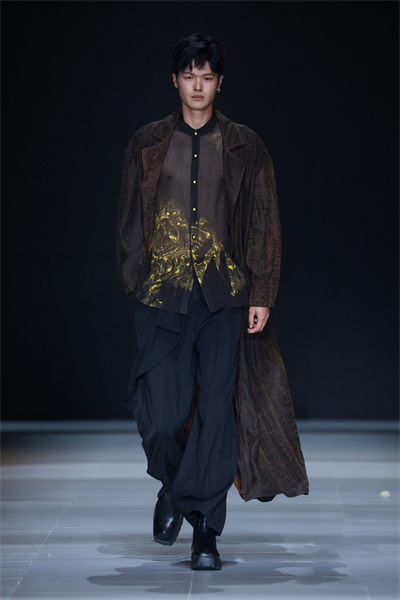 “本次发布的17套服装融合了传统非遗文化元素‘大漆’和‘香云纱’,尽显飘逸自然之感,细节上采用了抽绳工艺,穿者可根据自身喜好调节衣服的状态。”“时况”品牌创始人况敏表示,此次成衣设计以“和光同尘”为主题,倡导返璞归真,顺应自然、拥抱变化,诠释了对传统文化的致敬和对当下生活态度的反思。