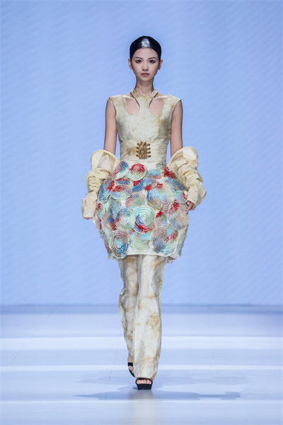“这些作品是时尚设计学院的毕业设计作品,作品主题‘元炁',寓意生命根源。”负责学生作品发布的时尚设计学院教师付雪介绍,学生们深入挖掘传统民族文化审美符号,把古老工艺融入现代设计,运用现代剪裁将面料创新组合,设计出了一系列文化底蕴与时尚感兼具的精美服饰,展现了对传统文化的传承与创新发展,不少作品是学生参与教师科研项目时创作的。