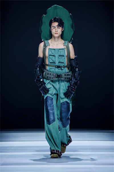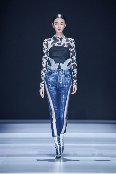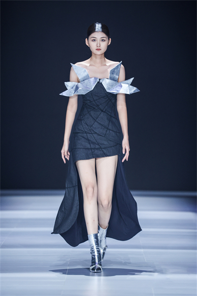 意大利马兰戈尼学院上海校区学生作品的主题为“INFINITY・玖”,“INFINITY”处于现实与虚拟交织边界,而“玖”在中国文化中有极深、极远之意,蕴含极限无尽可能与鼎盛之势。设计者们以独特创意设计视角,运用所学剪裁与缝纫技艺,将哲思融入时装表达,探讨了物理现实与虚拟现实的哲学关联。