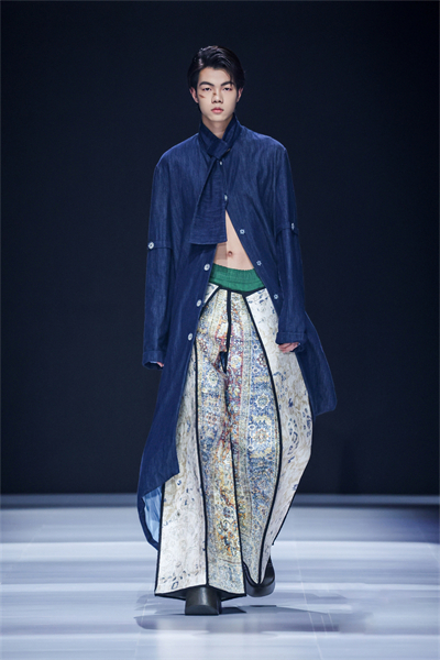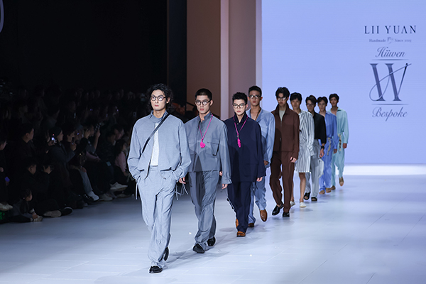 向传统手工技艺回归的,还有高端西装定制品牌“Hiiwen&LII YUAN”,品牌主理人张春海老师将时间、情感、技艺沉淀在每一个细节,“把每一件作品当作一件艺术品”进行勾画。张春海介绍,本季设计灵感源于90年代的经典男装风格,旨在为穿者带来一种既低调又独具风格的穿搭体验。“潇洒流畅的廓形与精巧的搭配传达一种略带怀旧、松弛而坚定的态度。”