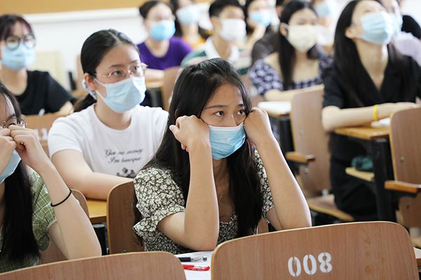 学子们戴着口罩认真听课。刘恒 摄