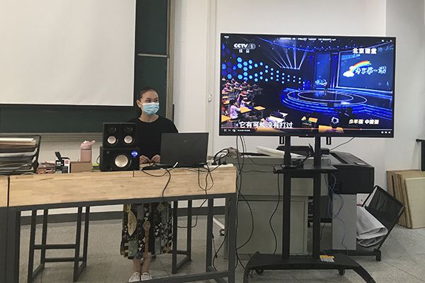 胡琦老师在课堂上播放2020年《开学第一课》。