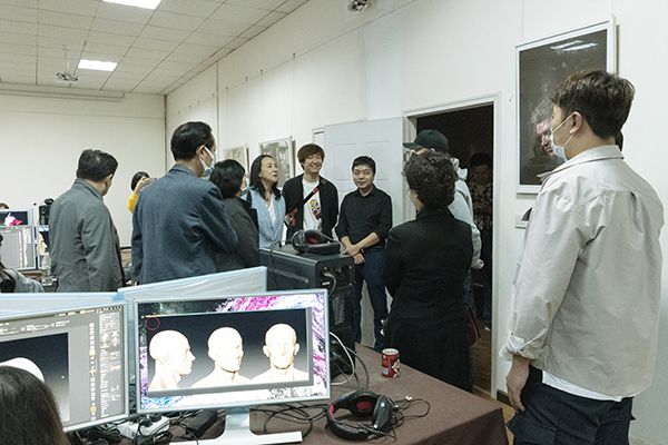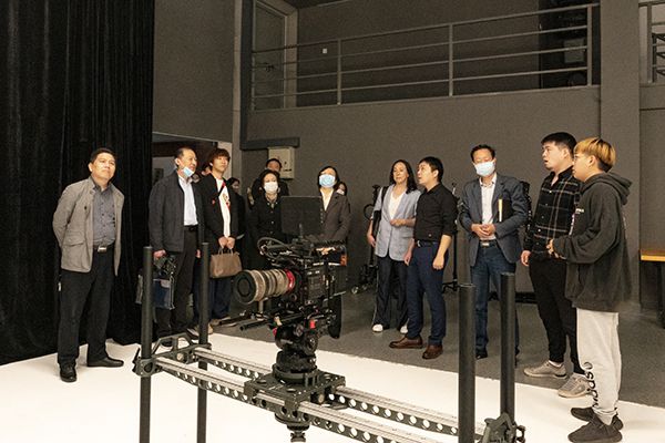 随后,在魏彬等领导的陪同下,李蓉一行参观了成龙影视传媒学院数字艺术研创中心、黑匣子剧场、动作捕捉实验室等教学场所。