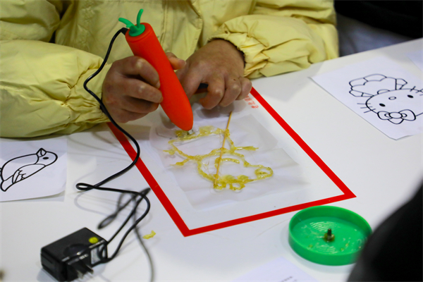 食品与生物科技学院“同创驿站”社区的糖画制作。潘辰思 摄