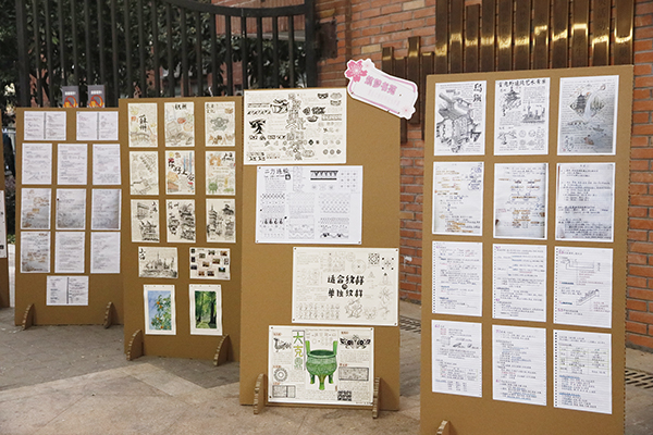 水磨石、玻璃幕墙、大理石砖……在环境设计学院“筑梦书院”社区的“建材材料猜猜猜”展位前,得一堂、图书馆、荷花池……这些印有学校建筑和风景图样的创意香片摆满了桌子,同学们通过图片辨认校园内的建筑材料,连续猜对3个,就可以获得自己喜欢的香片。“在轻松愉快的氛围中引导同学们认识建筑材料,可以有效促进专业认知。”该院分团委书记黄俊杰介绍道,“这一侧是我们正在进行的学霸笔记评选,这些笔记来自学院环境设计、园林、风景园林、室内艺术设计专业的50余位同学,我们将邀请现场观众评选出心中最好的10份笔记,并对笔记的作者予以奖励。”