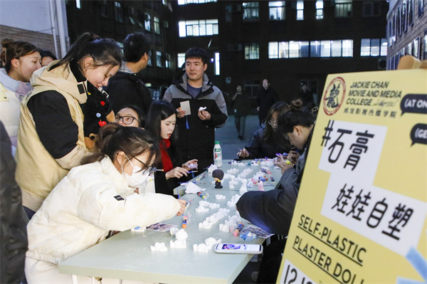 同学们在成龙影视传媒学院“星光影院”社区体验“石膏娃娃自塑”制作。刘恒 贾亦萱 摄