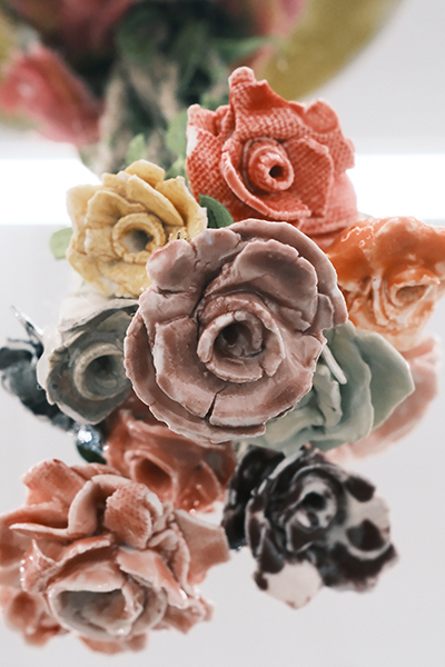 “纤维的柔软和陶瓷的高硬度,两种材料交织,突破大众对陶瓷作品的固有观念,呈现出刚柔并济的特点。”公共艺术学院工艺美术专业学生唐珂创作的作品《交织》斩获一等奖。作品质地温润、色泽纯净,层层叠叠的线条、浅黄淡绿的釉色和极具真实感的褶皱,视觉上是自然柔软的织物,触觉上却是坚硬冰冷的陶塑,极具反差与设计感的作品吸引着众多师生驻足观赏。