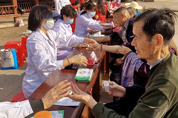 当天上午9点,由20余名党员干部和师生志愿者组成的服务队来到社区广场设立服务点。亚心护理学院、食品与生物科技学院的专业教师和校医院的医生们为社区居民免费测量血压、科普健康知识;信息工程学院、艺术设计学院和“五色阳光”志愿服务队的同学们,帮助居民维修电脑、教社区的孩子们绘画、剪纸,为孩子们播下艺术的种子。