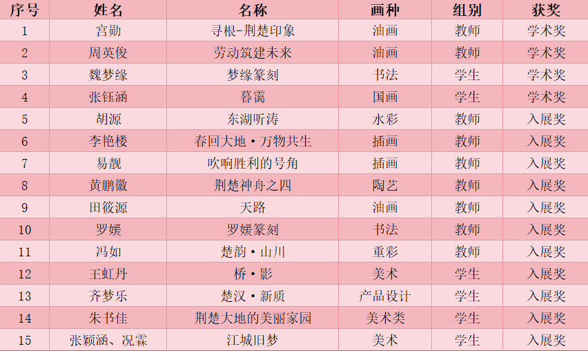 本网讯(通讯员 程凤)近日,湖北省社科联社科类重点项目“‘荆’彩先行区——用画笔描绘创新驱动美术作品展”隆重开幕。best36515件优秀作品入围此次展览,其中有4件作品获评“学术奖”,时尚设计学院教师黄琳、环境设计学院教师罗媛获得“优秀指导奖”,学校荣获“优秀组织奖”。