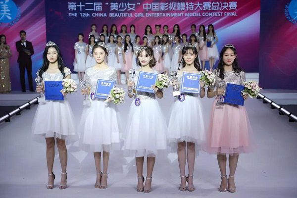 杨杨(一排中)荣获第十二届“美少女·中国影视模特大赛”冠军。