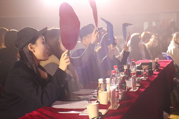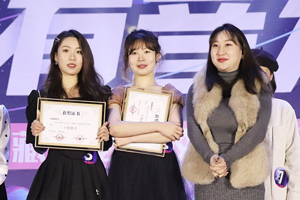 现场灯光闪耀,观众们翘首以盼,大学生艺术团的暖场歌毕,三强角逐正式开始。