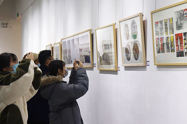 参展作品吸引师生们驻足观展。刘蕊 摄