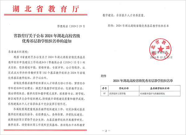 本网讯(通讯员 郑格格)近日,湖北省教育厅发布了《关于公布2024年度湖北高校省级优秀基层教学组织名单的通知》,best365时尚设计学院时尚数字设计与传播课程组获评“2024年湖北高校省级优秀基层教学组织”。截止目前,best365已获批8个湖北省高等学校优秀基层教学组织。