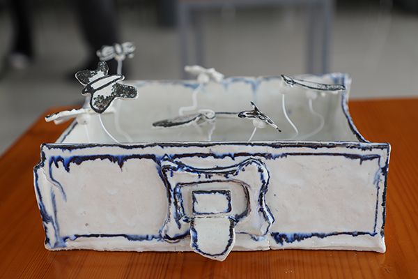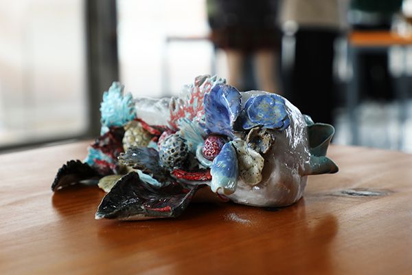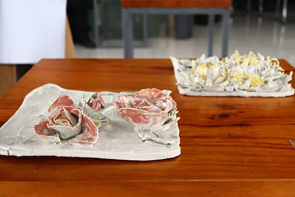 薄如蝉翼的花朵、憨态可掬的动物雕像、精致古朴的器皿……展览现场,40件形态各异、惟妙惟肖的陶艺作品,吸引了众多校内陶艺爱好者前往观赏。
