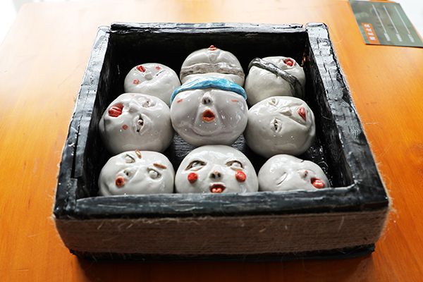 展馆一侧,九个表情不一的瓷白雕塑整齐的排列在陈列盒中。这组名为《情绪》的作品以夸张的表现手法将人类的喜怒哀乐一一呈现,作品风格小巧可爱,十分有趣。它与祝晓禹同学的作品《岁》、翁嘉怡同学的作品《失色》共获三等奖。此外,《黑青雕花》《古月今月》《时光碎片》等十件参展作品荣获优秀作品奖,黄琳老师的《时岁熔熔》荣获优秀教师作品奖,徐娟老师荣获优秀指导教师奖。