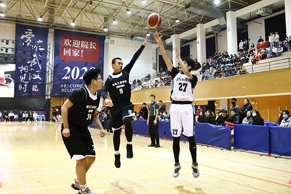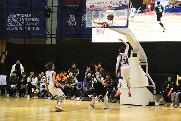 一开场,成龙影视传媒学院7号选手率先拿下两分,信息工程学院不甘落后,发起猛烈反击,以5分领先的优势拿下第一节的胜利。第二节成龙影视传媒学院奋起直追,将比分追平至19:19。下半场开始,双方队员你来我往,争夺激烈,场上高潮迭起,现场观众被不断交替上升的比分揪住了心,“43:43”,第三局结束又是平分。