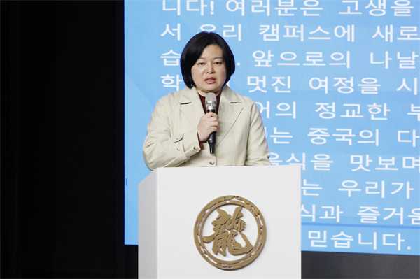“希望大家在这里结交到志同道合的朋友,留下一段难忘的青春回忆。”留学生国际中文课程教师代表、文化创意管理学院教师李卉琼表示,老师们将带领留学生们深入探索中文的精妙之处,体验丰富多彩的中国文化,品尝美味的中华美食,感受传统艺术的魅力,在积极交流中,互相学习、共同进步。“让我们以真诚为舟,共渡知识的汉江与长江!”成龙影视传媒学院播音与主持专业2204班赵晨同学发言时表示“很幸运能够成为韩国同学们的学习搭档。”近日,她与留学生们一起学习双方语言、交流饮食文化、谈论兴趣爱好,“获得满满成就感”。