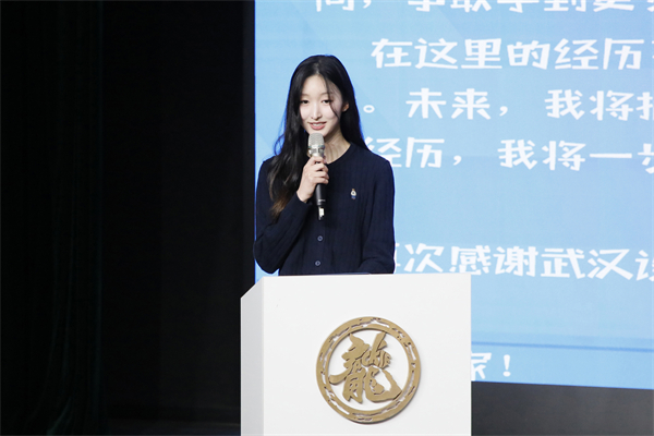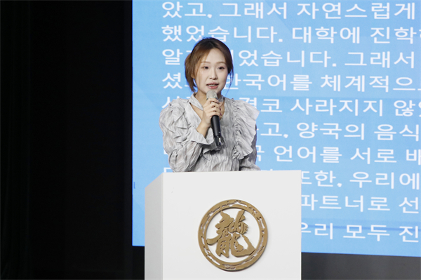留学生代表、韩国韩瑞大学学生刘世领感谢学校给予的宝贵国际交换学习机会。刘恒 摄