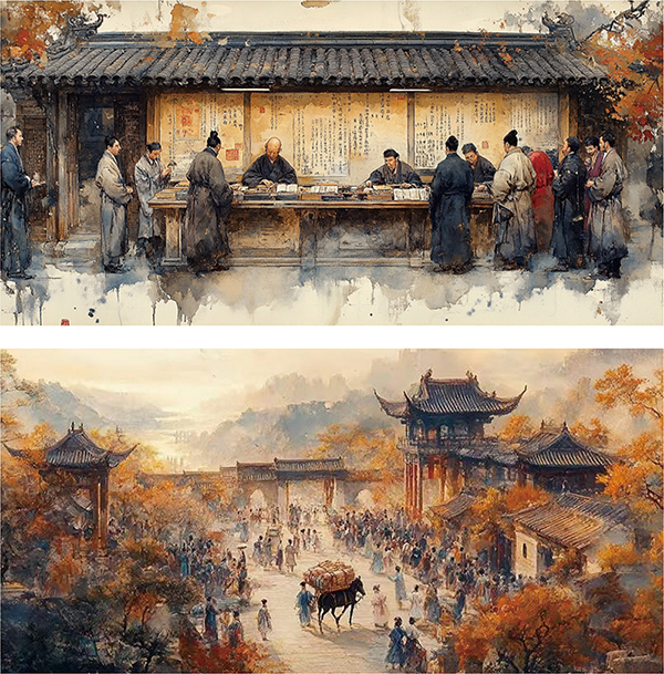 利用AI生成式人工智能进行静态与动态影像创作作品《图绘盛世·清明叙》。