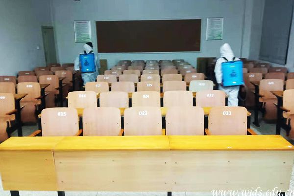 防控防疫组对考试区域进行全面消杀。